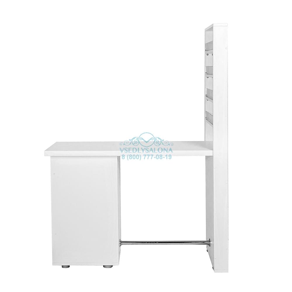 Маникюрный стол 203 – реальное, изящное изделие, которое превращает работу мастера в профессиональный подход, исключая все возможные недоработки, прорабатывая с клиентом все процедуры на одном дыхании. Этот комплект состоит из деревянной столешницы, крепкого каркаса, боковой высокой ниши с полкой, хромированной трубы для ног, тумбы на три полки, квадратных кнопок с дизайнерским подходом. Стиль визуально белый, напоминает нежные ноты совершенства и неповторимого дизайна. Четкость линий, где каждая грань состоит из общей структуры соединений. Надежное, сформировано согласно сертификации. Фишка от модных парикмахеров. Шедевр в одной ноте.