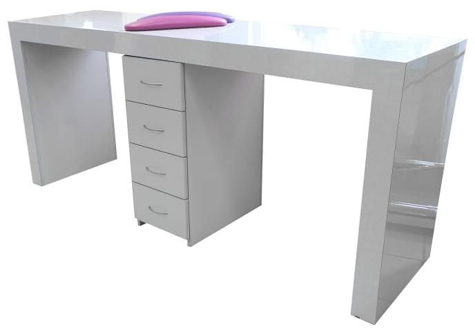 Маникюрный стол «Хирономо» - для тех, кто ищет по-настоящему изысканные решения для своего маникюрного салона или кабинета. Оригинальная форма столешницы, хромированные ножки, вместительная тумба – все это здесь. На нижней полке может быть установлена вытяжка для еще более комфортной работы мастера маникюра.