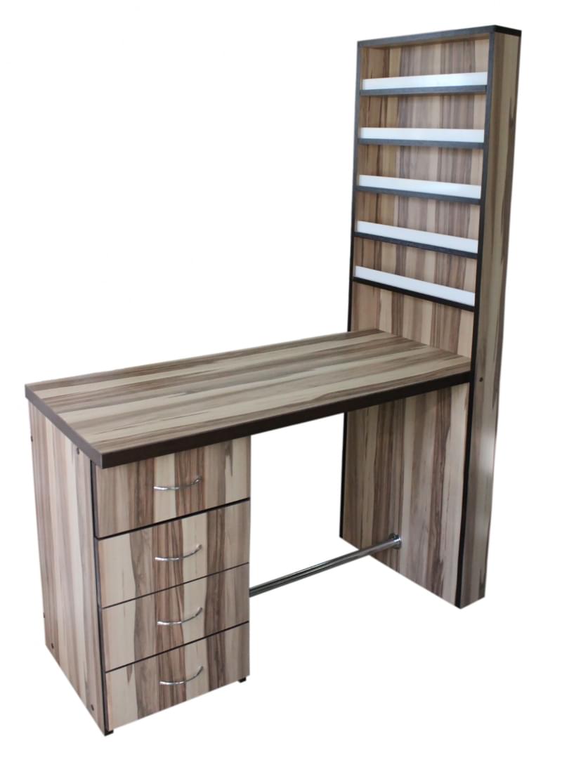 Одно из главных достоинств маникюрного стола «Мариэтта» - его вместительность. Здесь есть 4 вместительных выдвижных ящика, полка посредине и две боковых – с выдвижными подставками, которые можно извлечь и освободить больше места в высоту. Но самое главное – вместительная боковая стойка для лаков и других маникюрных средств.