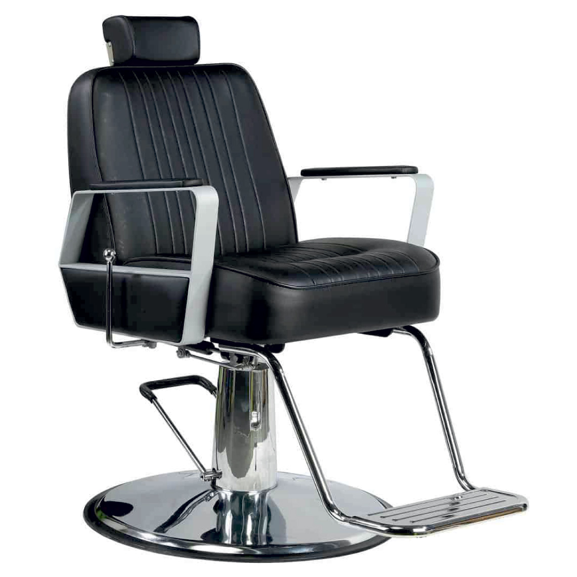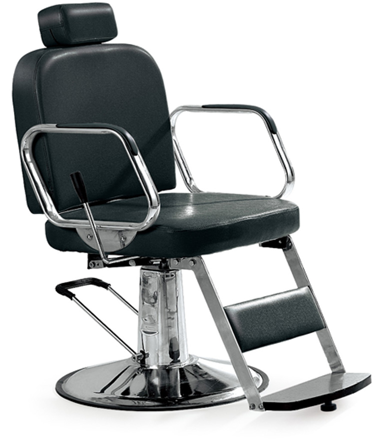 Стильное парикмахерское кресло с подголовником и подножкой.