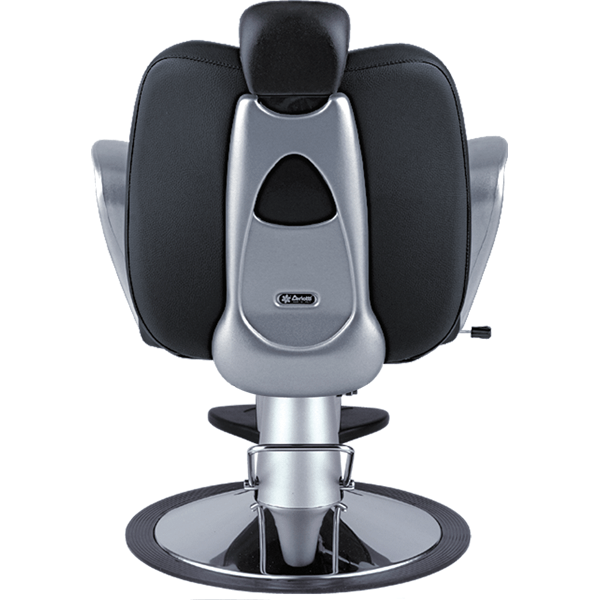 Кресло парикмахерское мужское, на пластиковой базе, выполнено из высококачественного поролона, каркас обтянут искусственной кожей, регулировка высоты гидравлика, регулирующаяся спинка, съемный подголовник, подлокотники из пластика (серебро), подножка.
