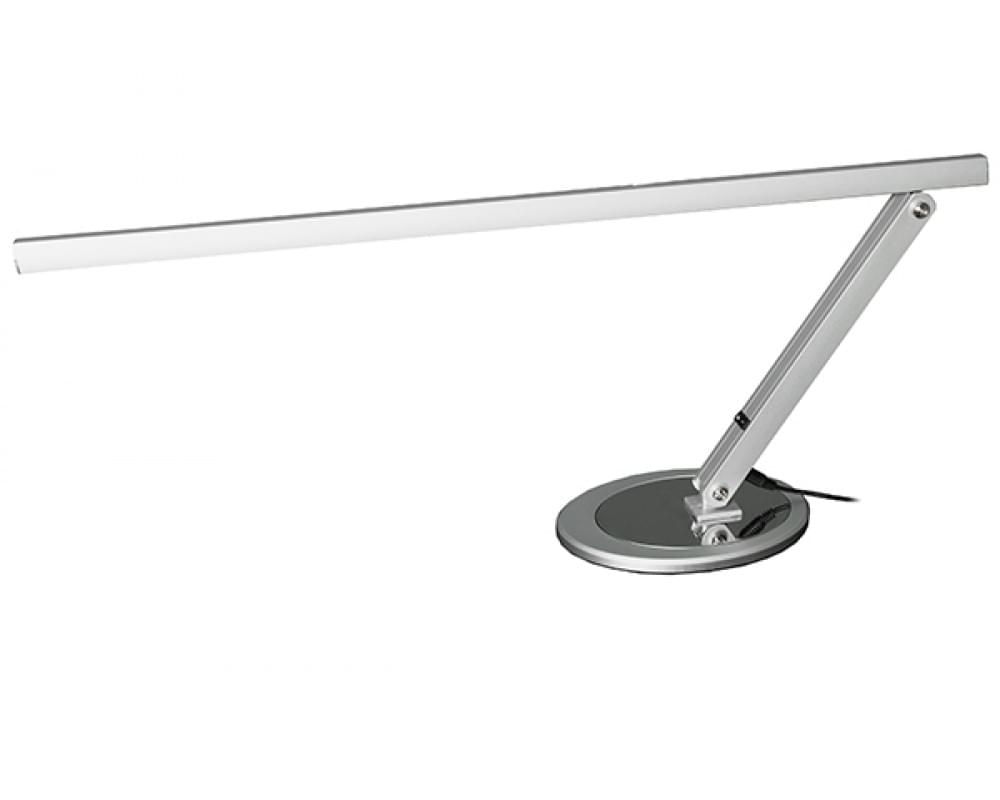 Оригинальная маникюрная настольная лампа на подставке с удлинённым светоэлементом. Большая площадь освещения делает эту лампу очень удобным для проведения процедур в маникюрном кабинете. Источник света – лампа компактная люминесцентная 20 Вт.