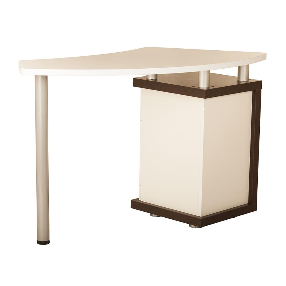Маникюрный стол «Хирономо» - для тех, кто ищет по-настоящему изысканные решения для своего маникюрного салона или кабинета. Оригинальная форма столешницы, хромированные ножки, вместительная тумба – все это здесь. На нижней полке может быть установлена вытяжка для еще более комфортной работы мастера маникюра.