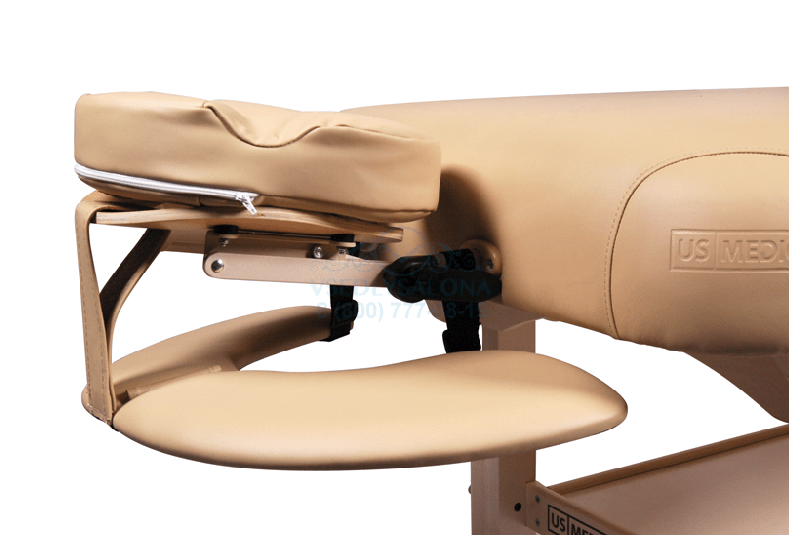 Подголовник: съемный эргономичный регулируемый подголовник с плавной бесступенчатой регулировкой угла наклона. Крепится к любому торцу стола.