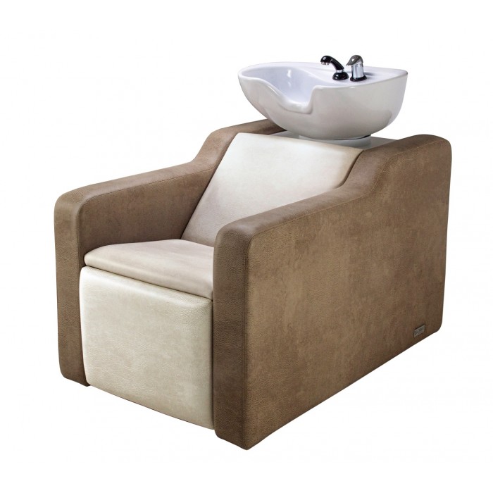 Мойка с креслом, с металлическими полками для шампуней. Мойка комплектуется глубокой керамической раковиной с регулировкой угла наклона и комплектом смесителя. Кресло оснащено массажем и электрическим подъемом подножкой части. Мягкие элементы кресла обтянуты искусственной кожей высшего качества, мягкие подлокотники.