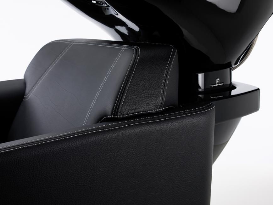 Мойка с креслом на белом или чёрном каркасе. Комплектуется глубокой керамической раковиной белого или черного цвета, с регулировкой угла наклона, комплектом смесителя с хромированной лейкой душа. Каркас кресла выполнен из металла, мягкие элементы обтянуты искусственной кожей высшего качества, мягкое широкое кресло. Возможен вариант с электрической подножкой, легкое управление с помощью пульта, а также с массажем спины. Цена указана на мойку с белым каркасом и белой средней раковиной, без электрической подножки.