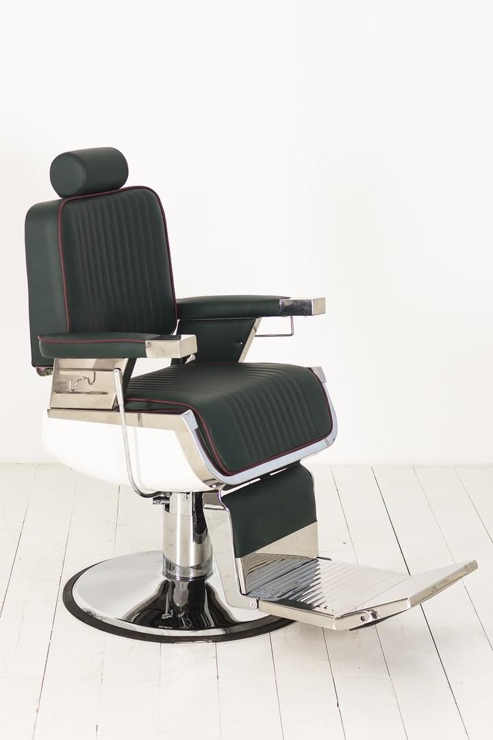 Мужское барбер кресло "A300C" имеет отклоняемую спинку кресла и синхронизированную с отклонением спинки подножку. Подголовник съёмный.