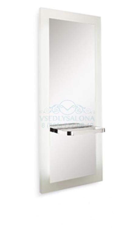 Зеркало парикмахерское, одностороннее, крепление к стене. Рама из оргстекла, хромированная столешница и подставка под ноги. Возможен вариант с подсветкой. Размер: 75х35х178